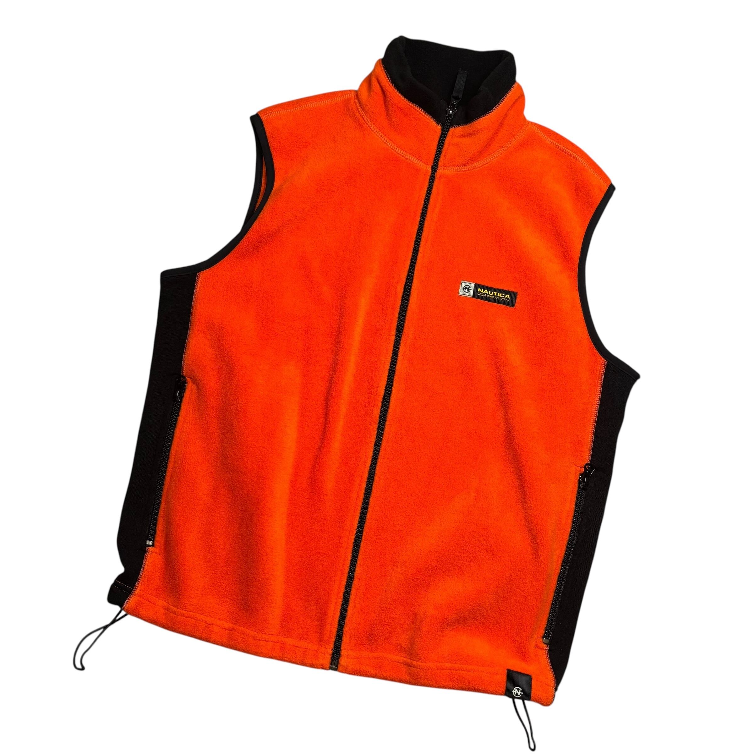 90s NAUTICA COMPETITION ロゴ フリースベスト S オレンジ×ブラック