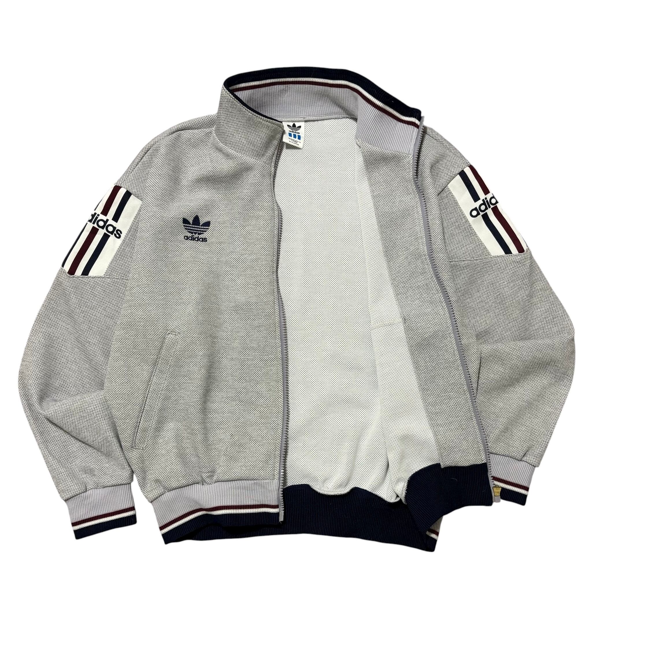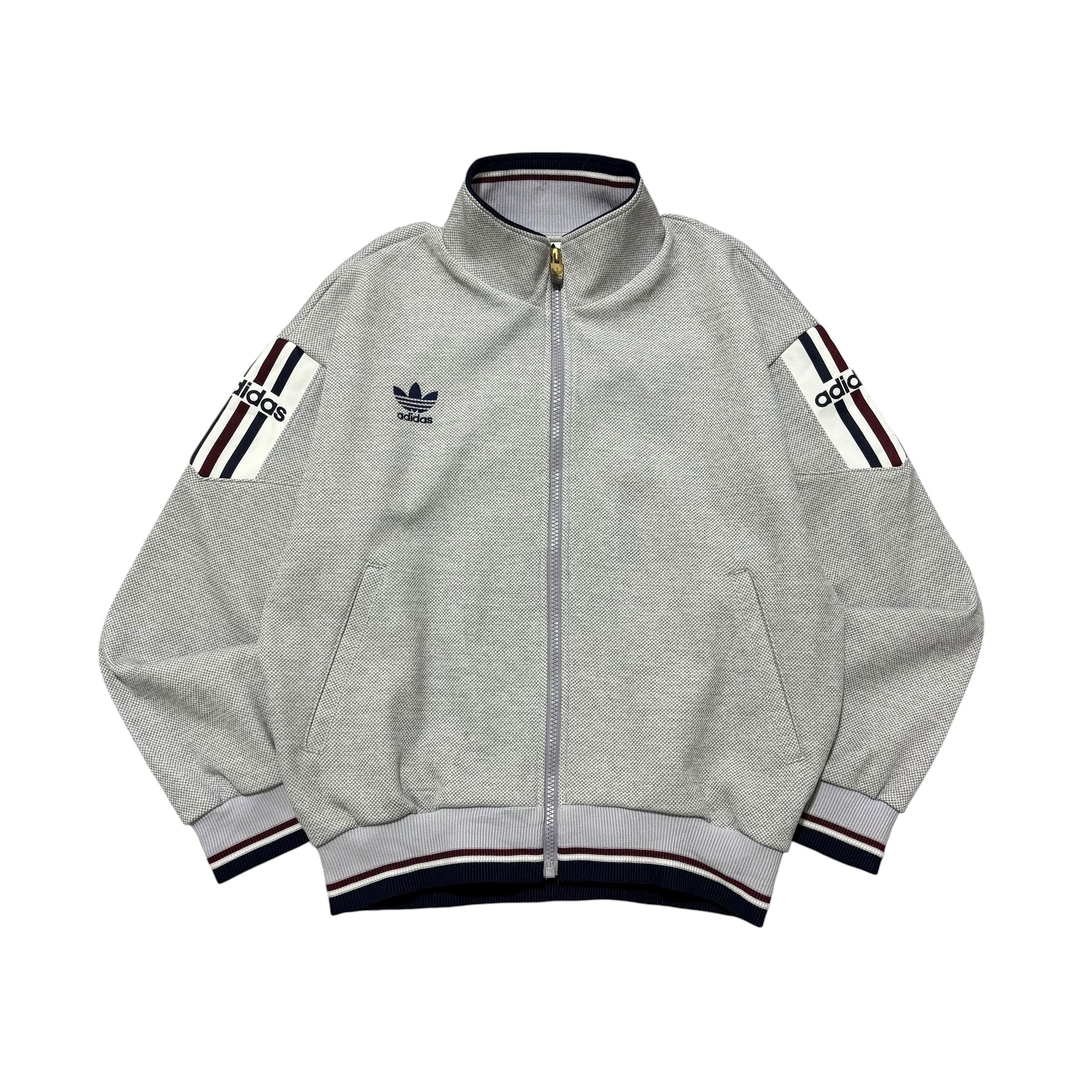 胸元のトレフォイル刺繍、袖の3ストライプ切替が特徴的な希少モデル。