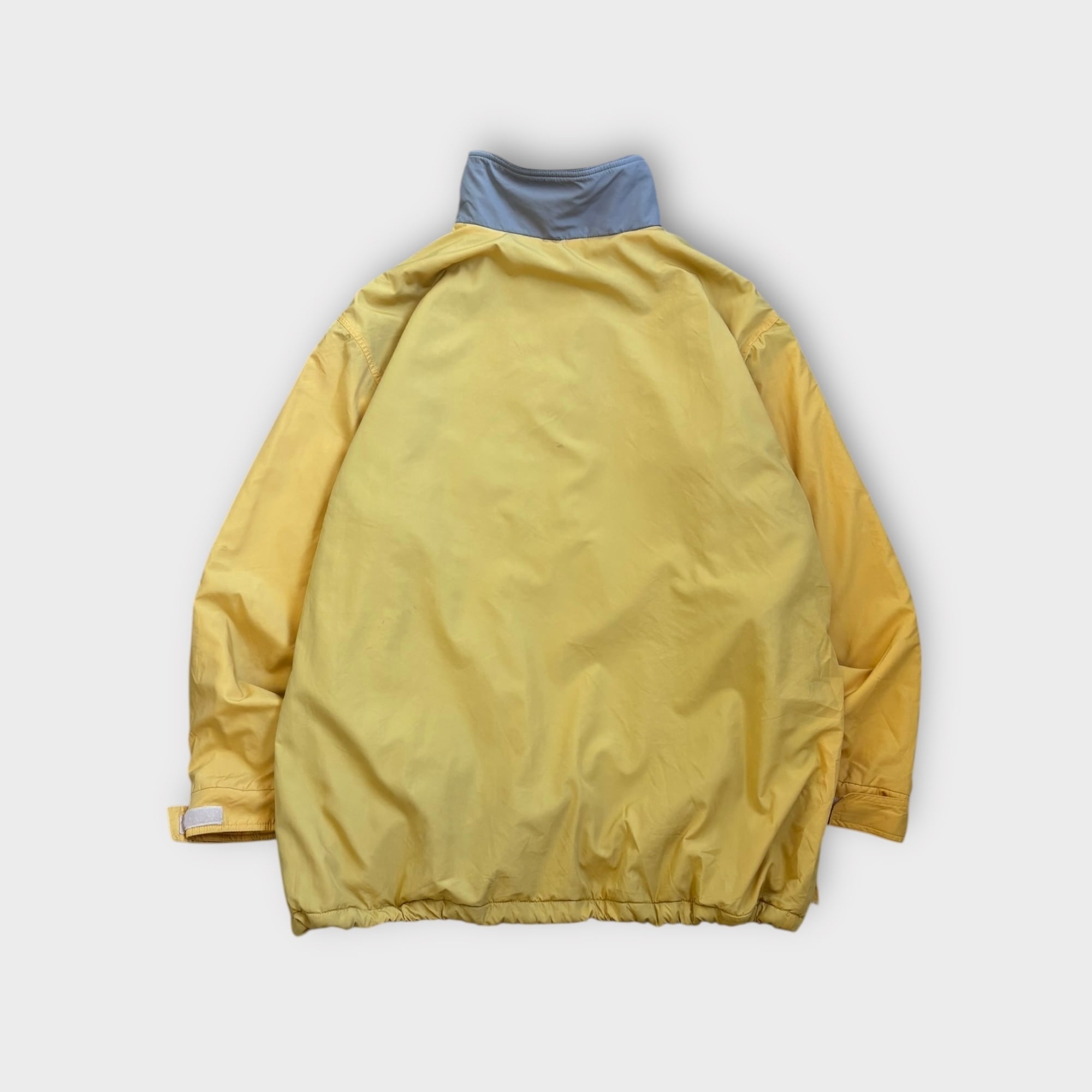 イエロー×グレーの切り替えデザインに、フロントの刺繍ロゴが映える一着。