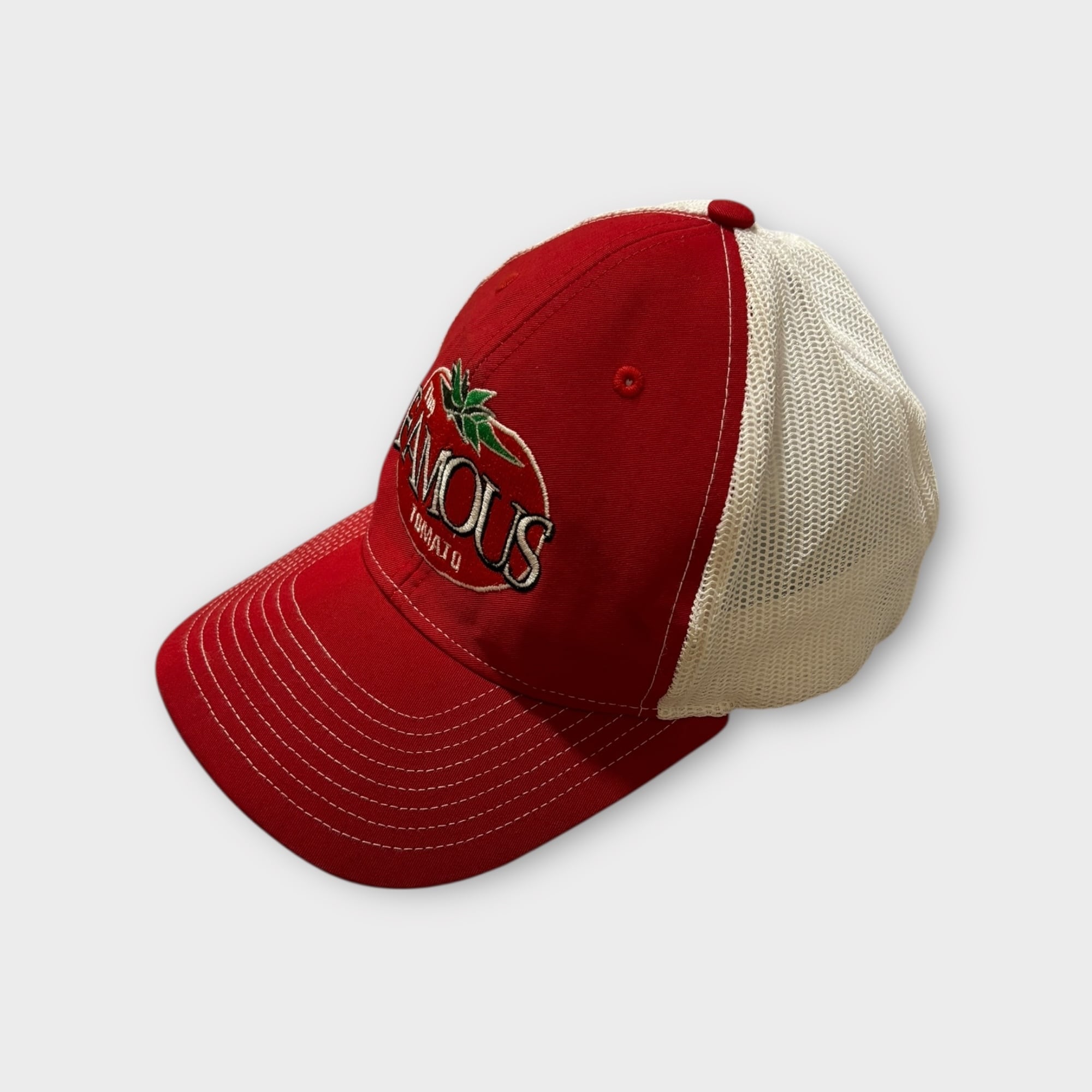 FAMOUS TOMATO 刺繍メッシュキャップ 赤×白