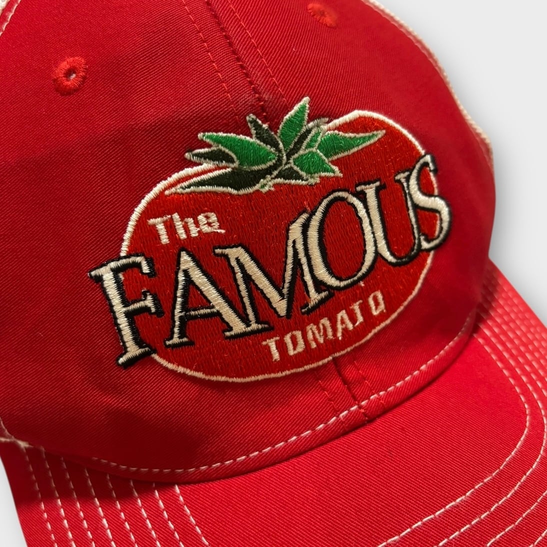 FAMOUS TOMATO ロゴ刺繍が存在感抜群のメッシュキャップです。