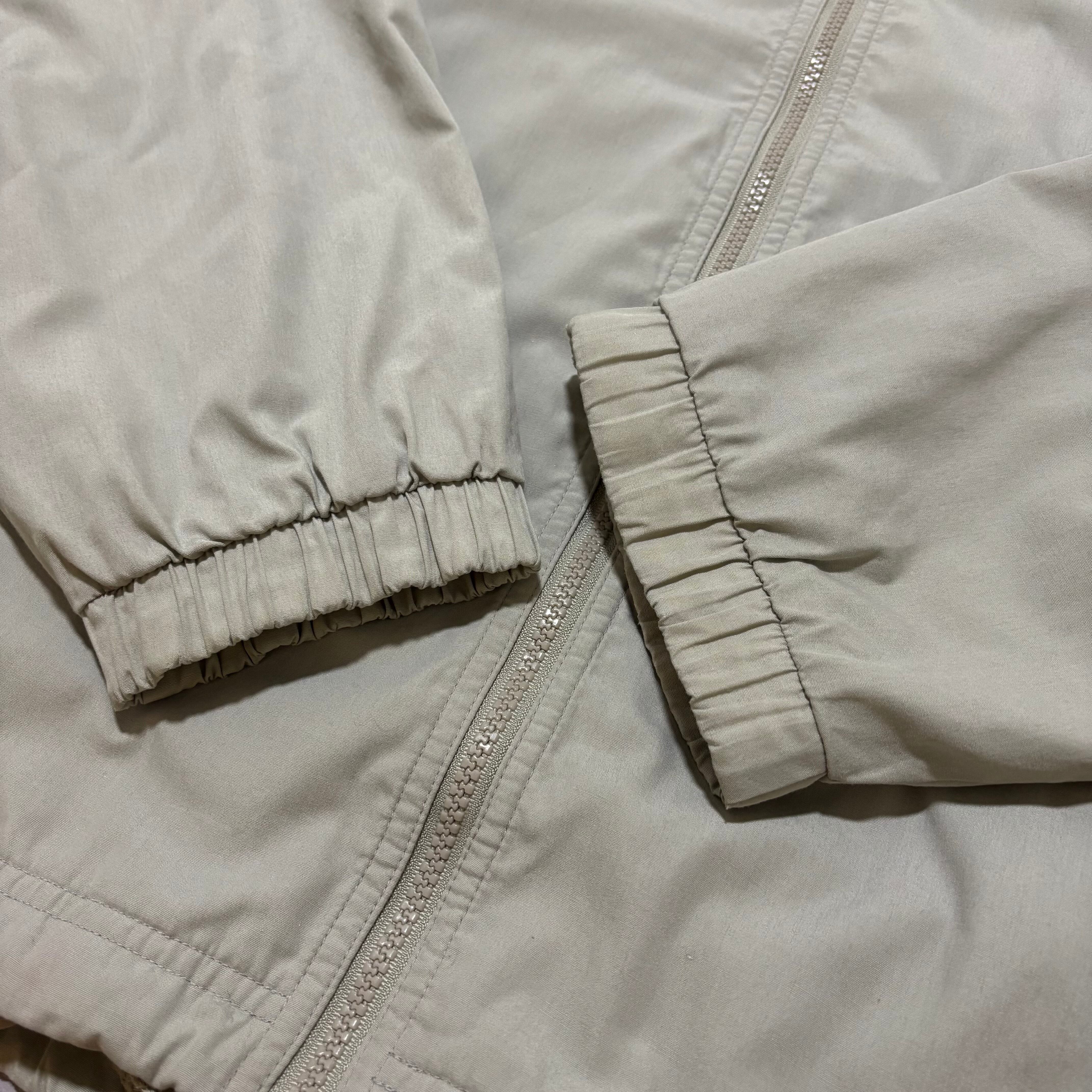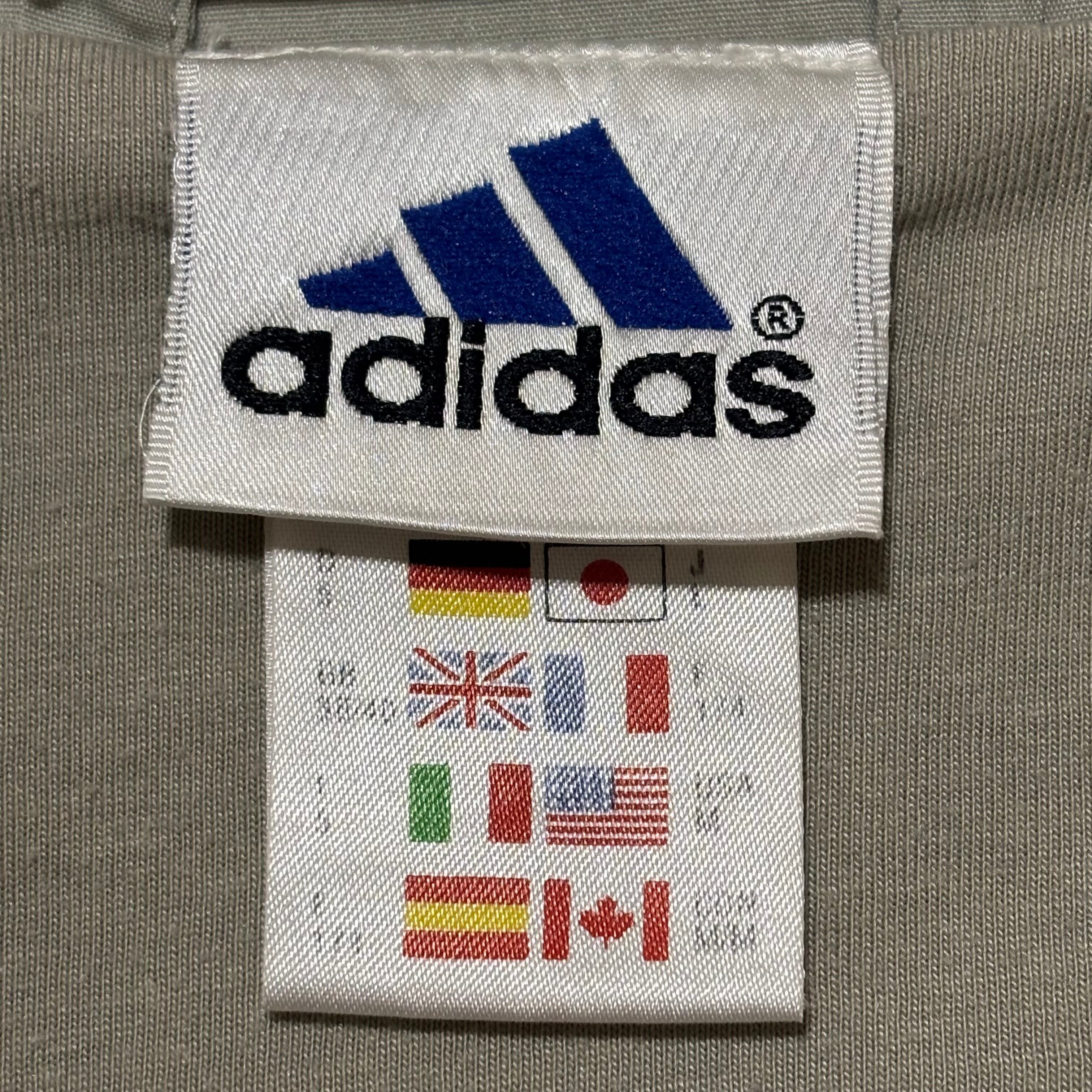 adidasのライトグレーナイロンジャケット。