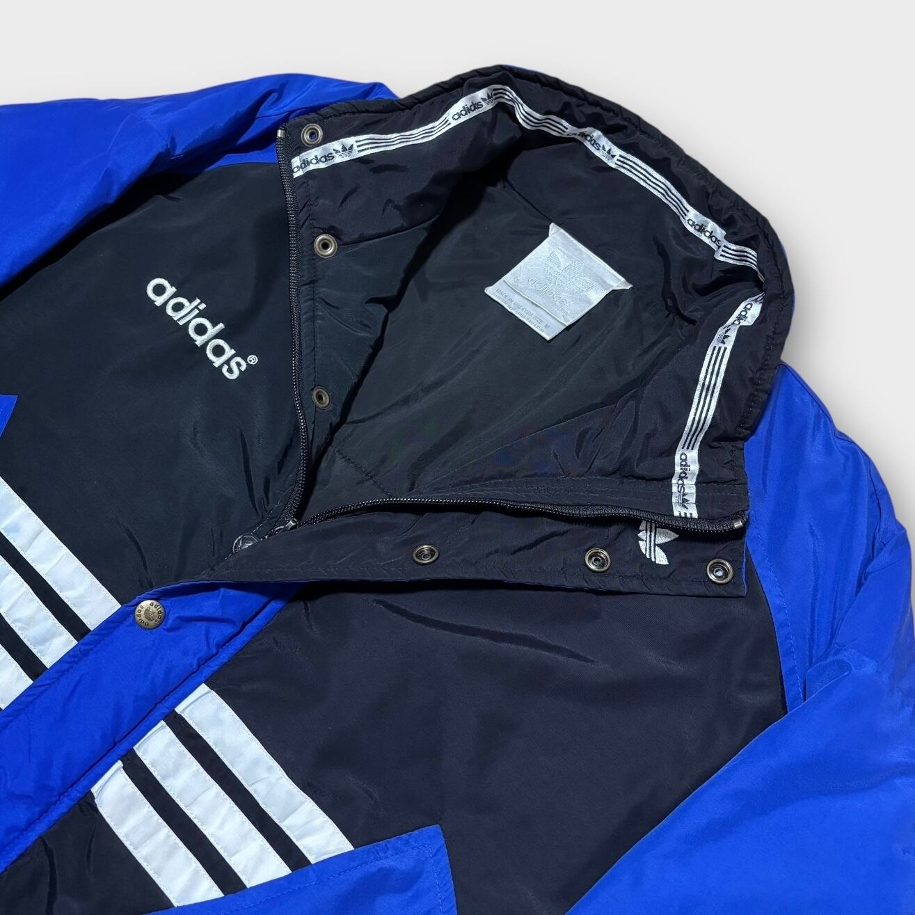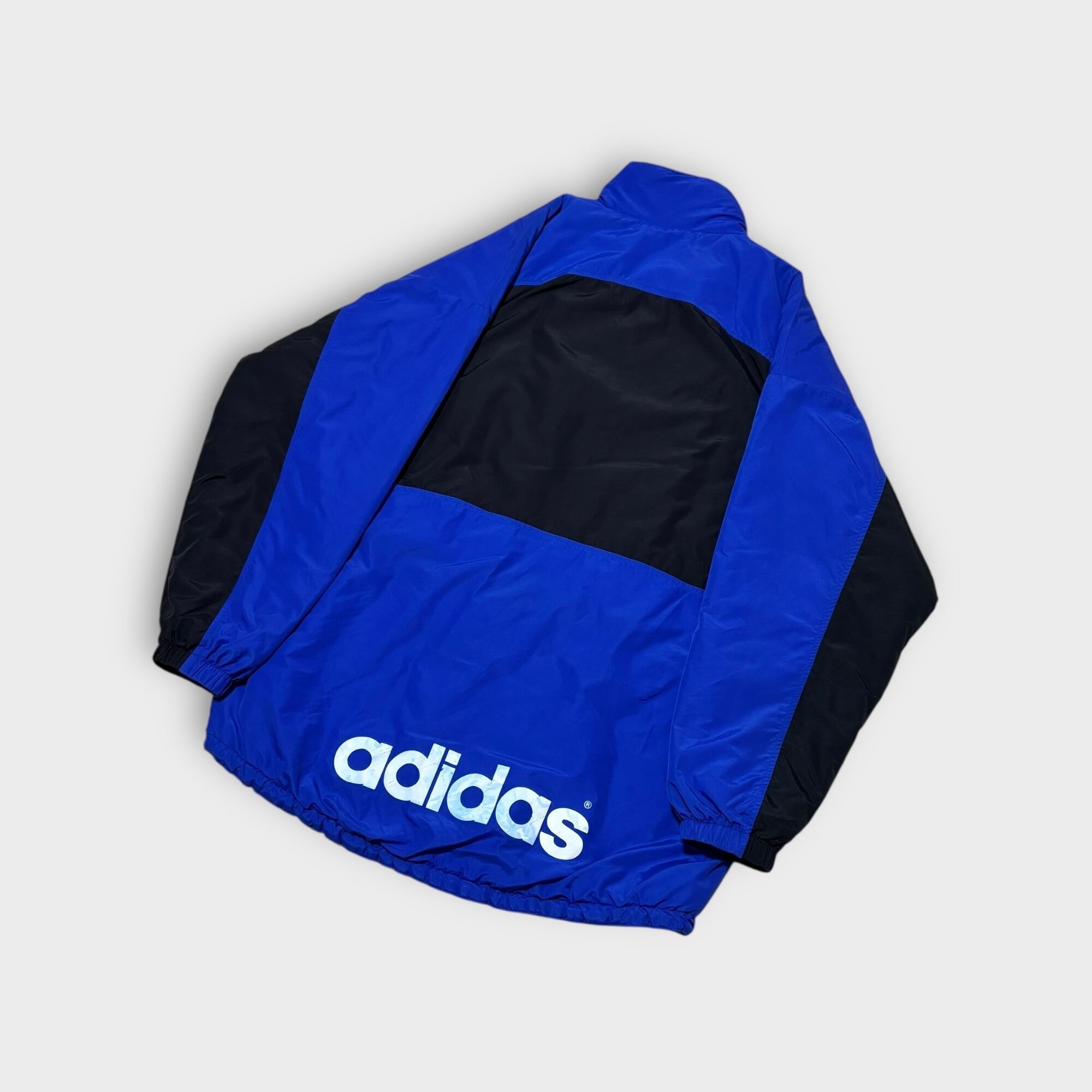 90s adidas 中綿ナイロンジャケット バックロゴ 青黒