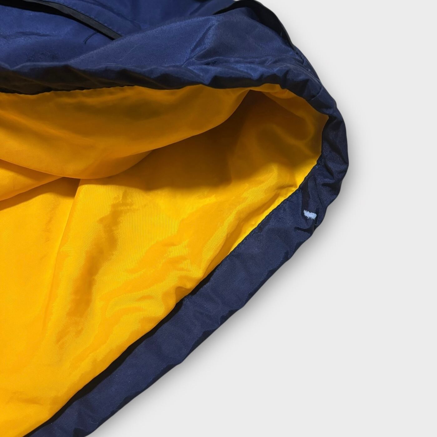 ネイビー×ブラックの切替カラーに、フロントとバックに刺繍ロゴ入り。