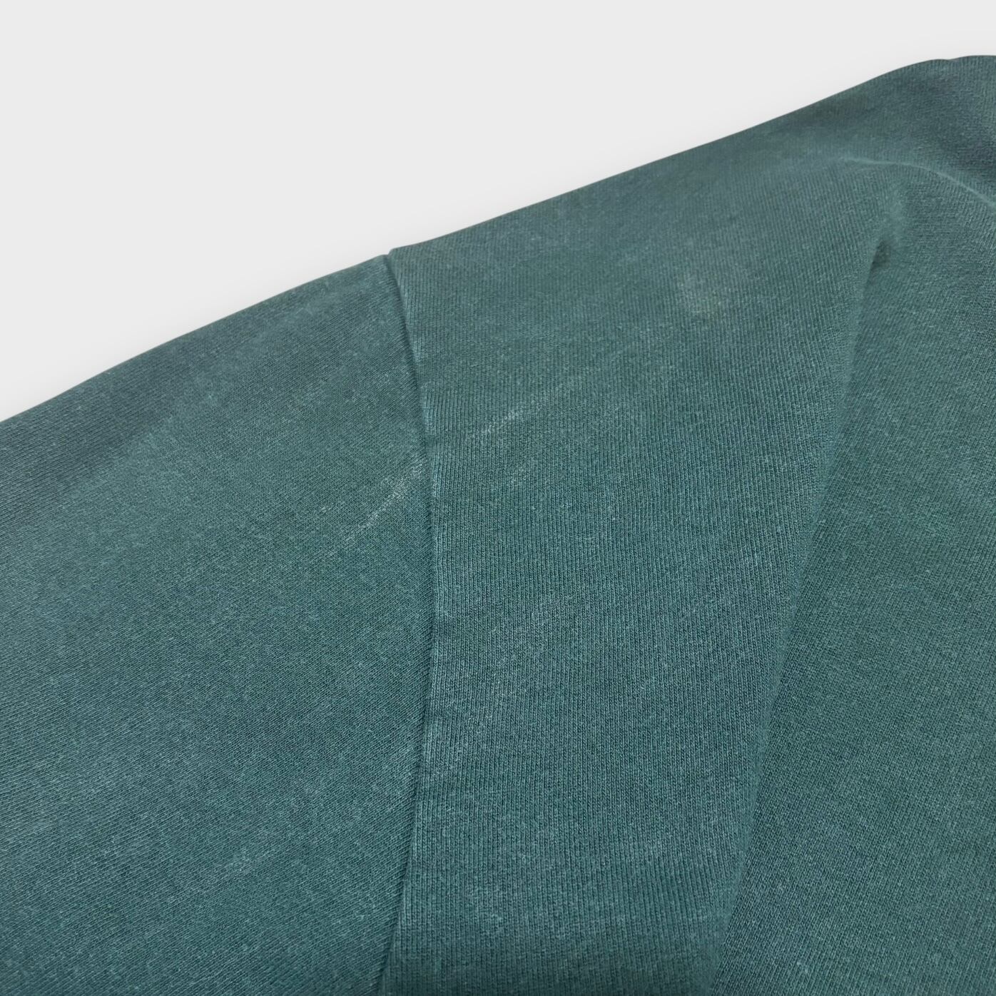 深みのあるグリーンカラーに、胸元のシールド刺繍がアクセントになったシンプルな1枚。
