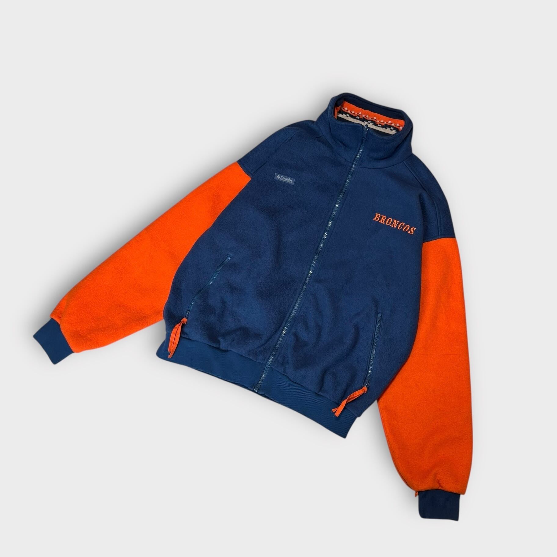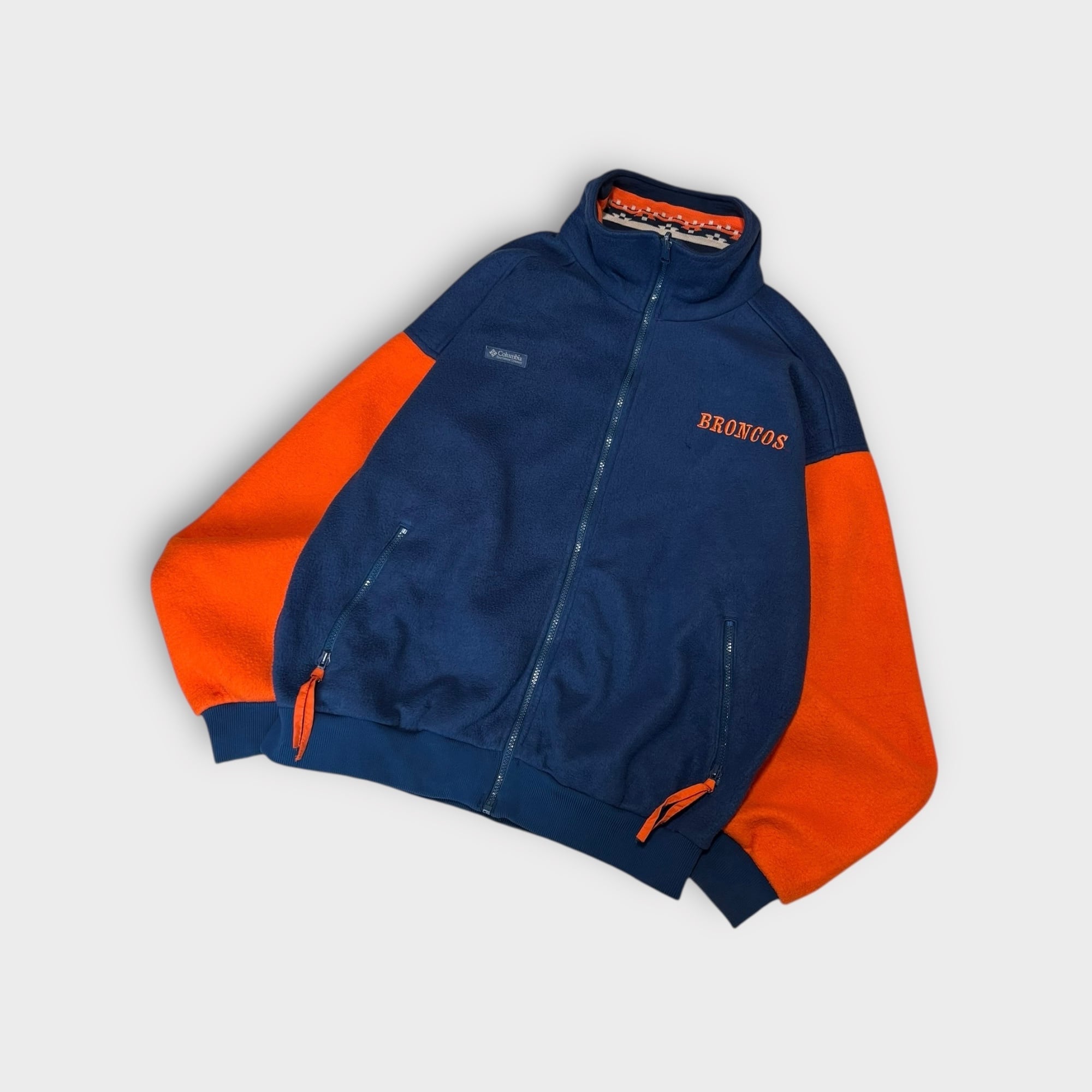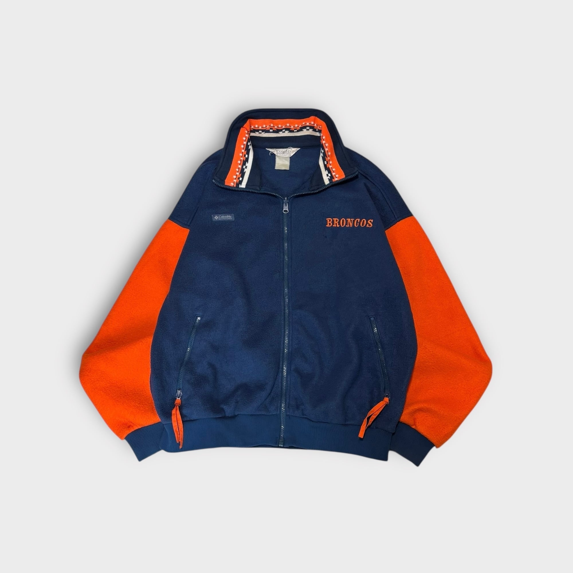 ネイビー×オレンジの切替デザインで、フロントにはBRONCOSの刺繍入り。