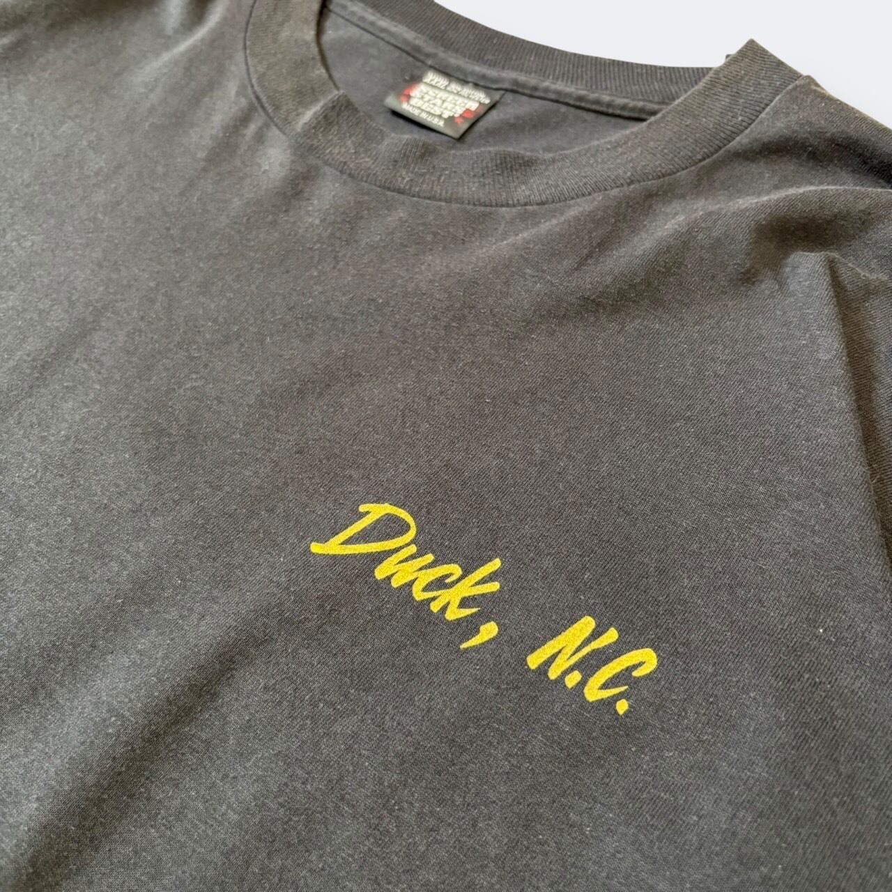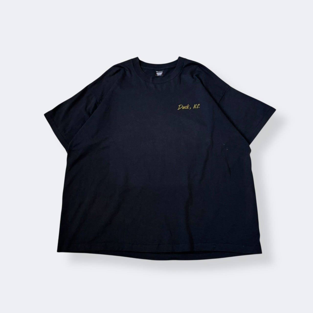 フロントには「Duck, N.C.」のワンポイントプリント、バックにはイーグルとバイクのグラフィックに「A WAY OF LIFE」のメッセージが入ったバイカーデザイン。