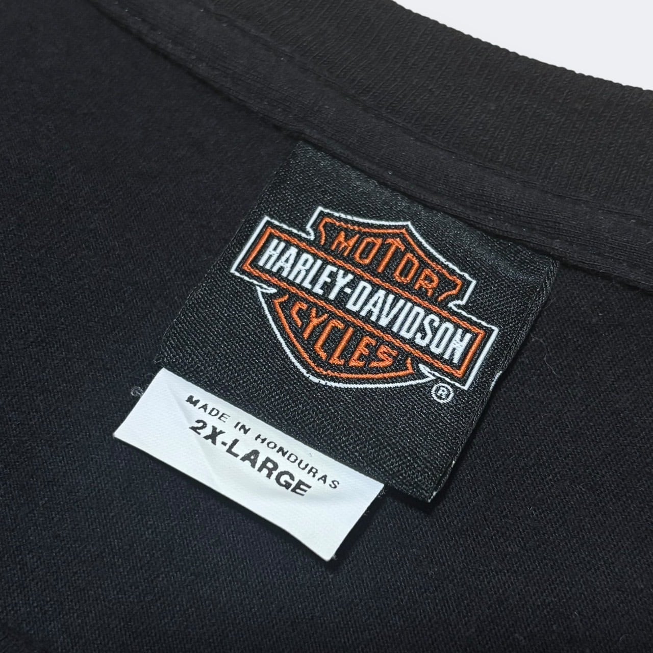 バックにはイーグルとバー&シールドロゴのバイカーデザインが入り、ハーレーらしい存在感のある一枚。