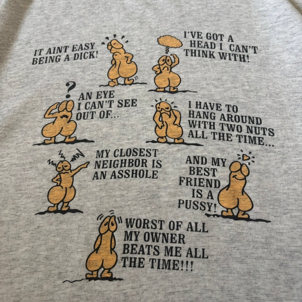 ユーモアの効いたエロプリントが特徴のTシャツです。